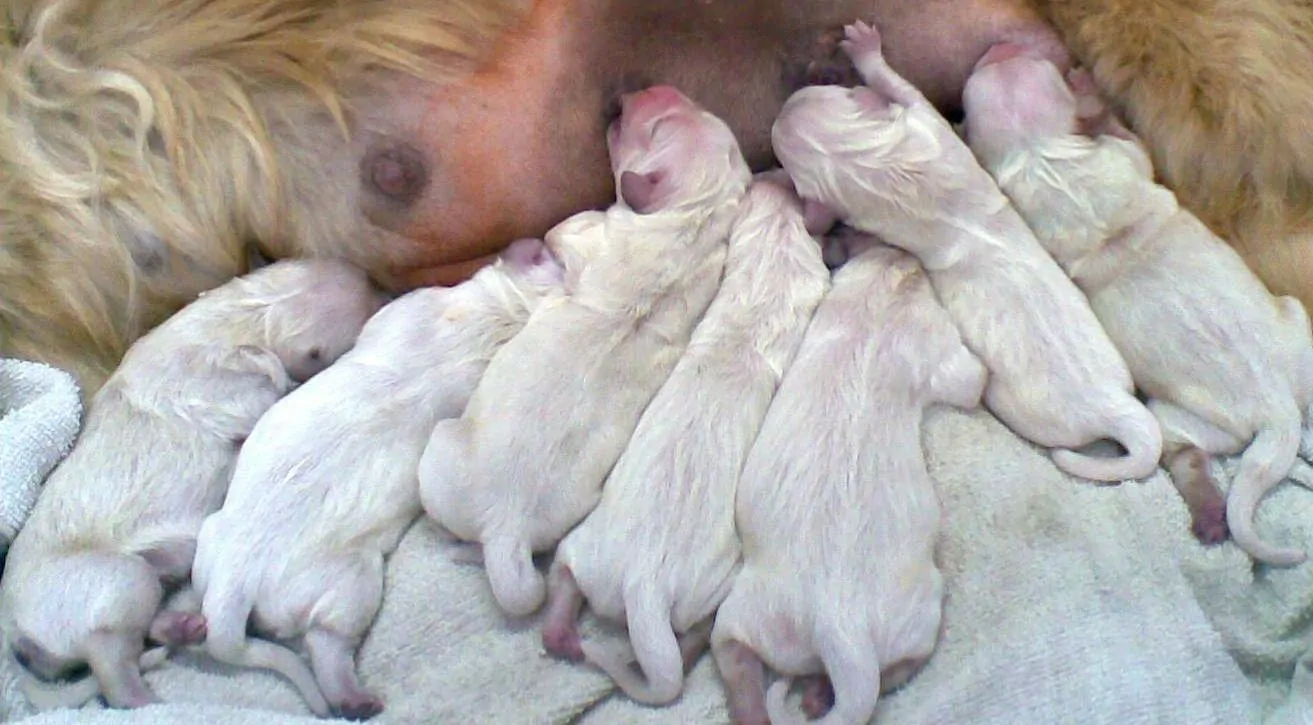 Wspaniałe, zdrowe szczeniaczki golden retrievery przyszły na świat w naszej lecznicy w wyniku cesarskiego cięcia