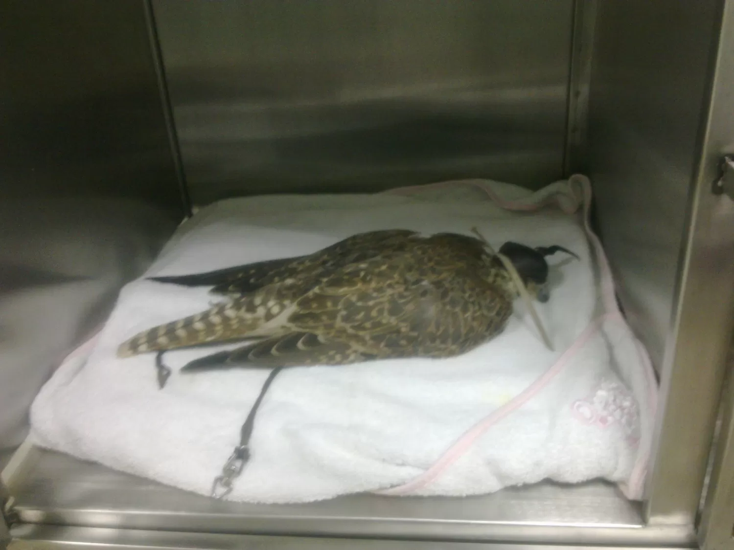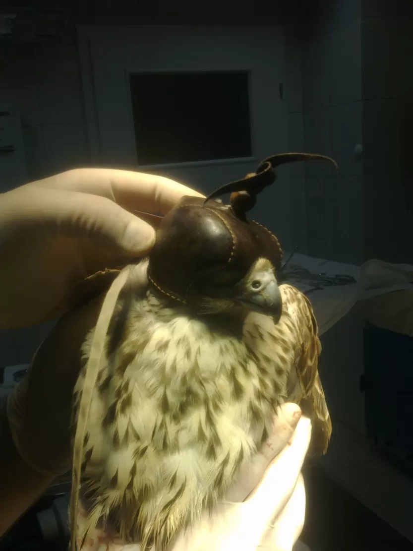 Tu sokół wybudza się z narkozy w naszym boksie szpitalnym