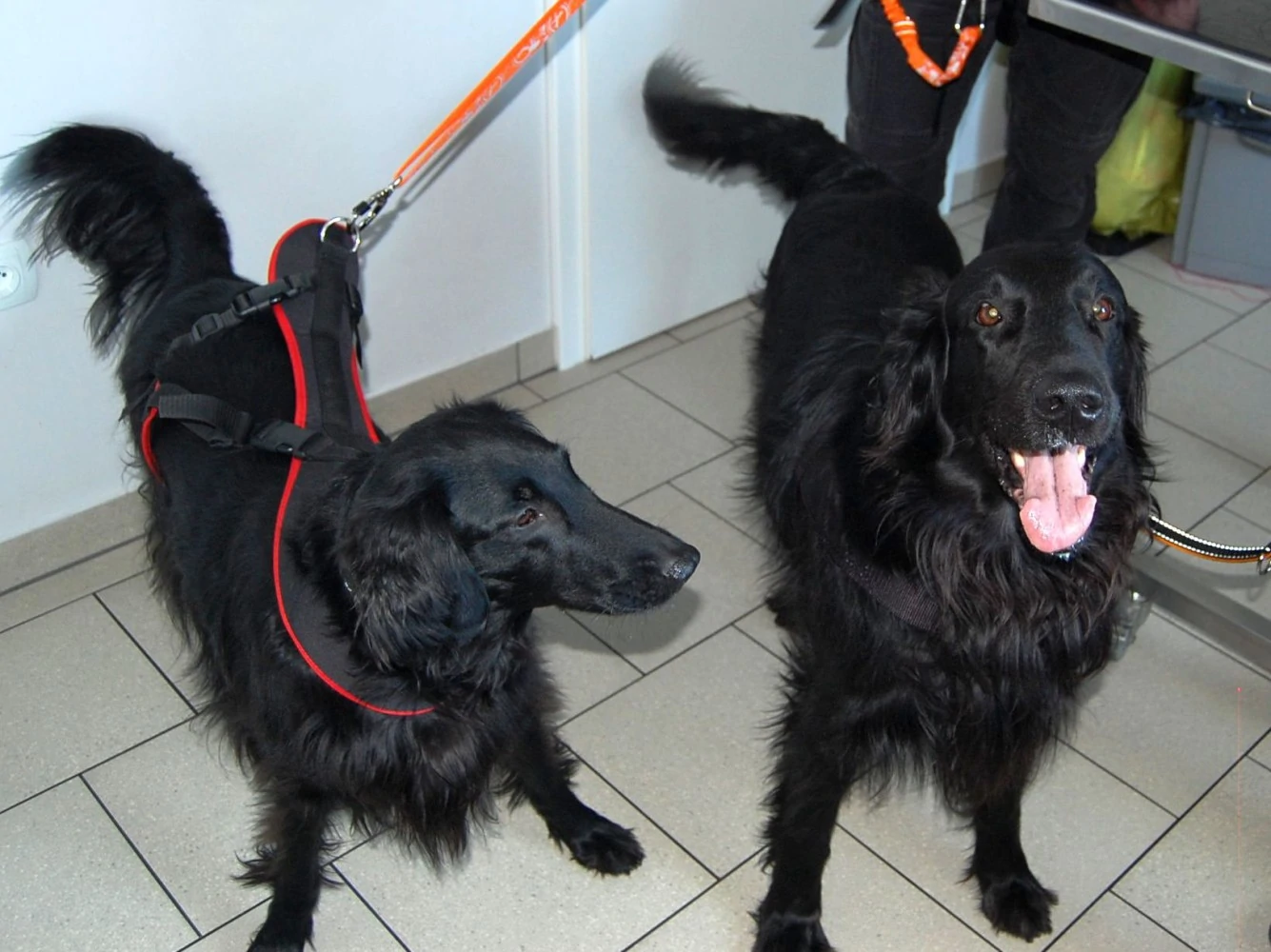 Pełne radości życia, inteligentne i aktywne flat-coated retrievery Ajtra i Blues. Opiekunowie dbają o zdrowie i kondycję swoich podopiecznych, a także regularnie kontrolują ich masę ciała