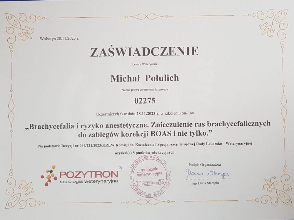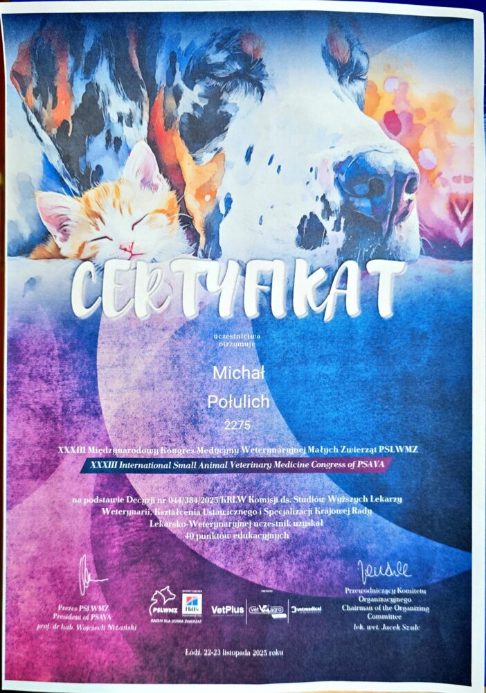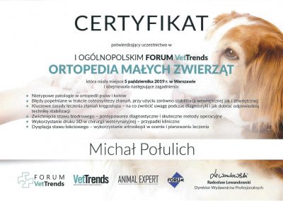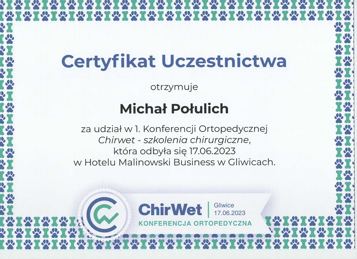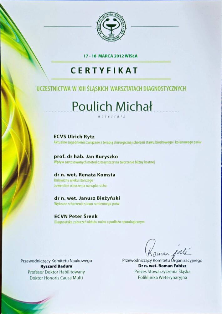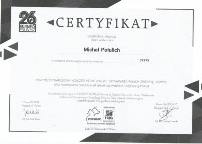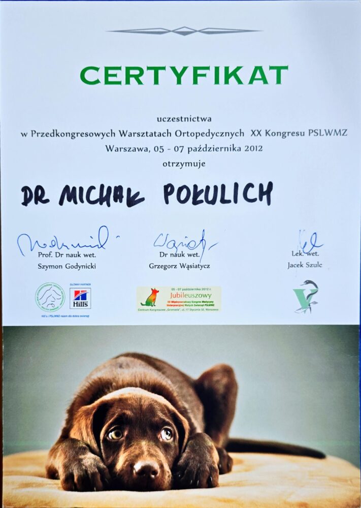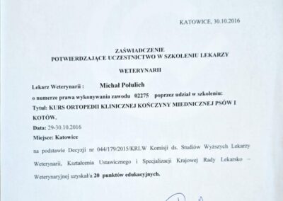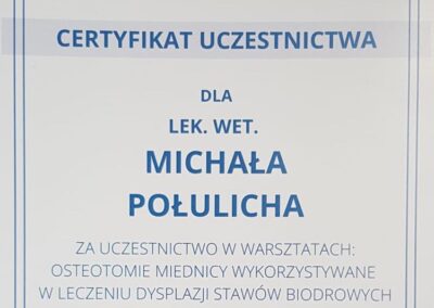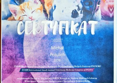 Tytuł specjalisty chirurgii weterynaryjnej uzyskany w 2008 r.