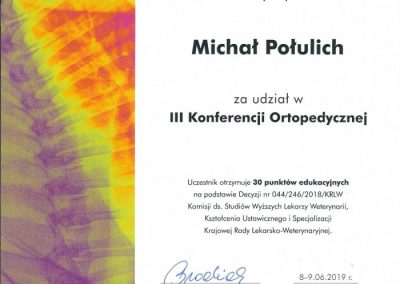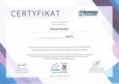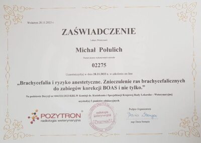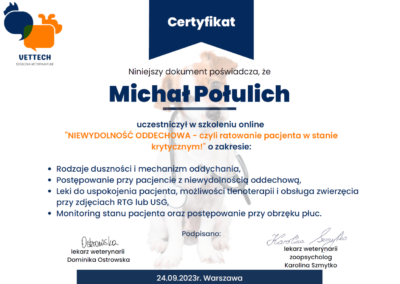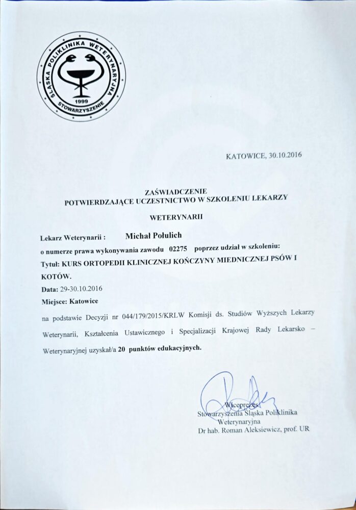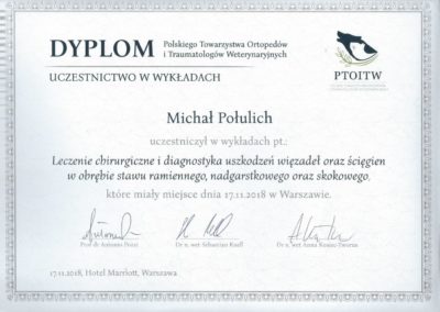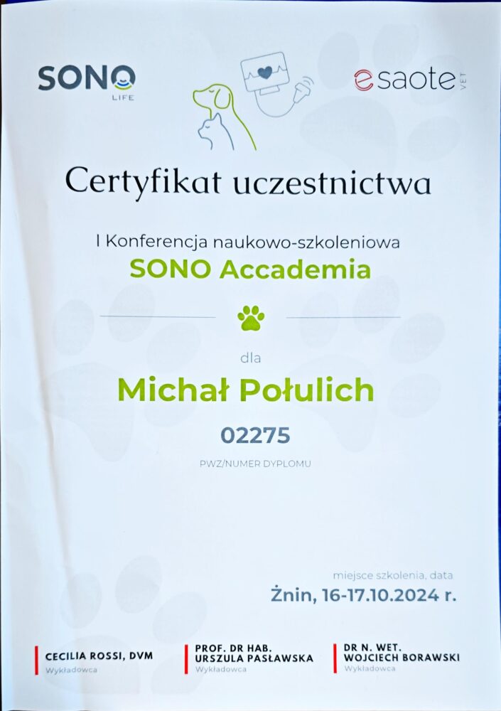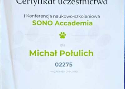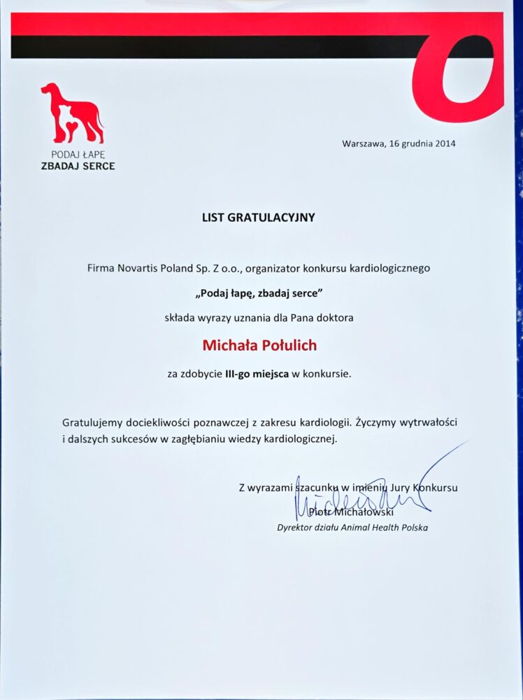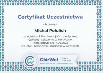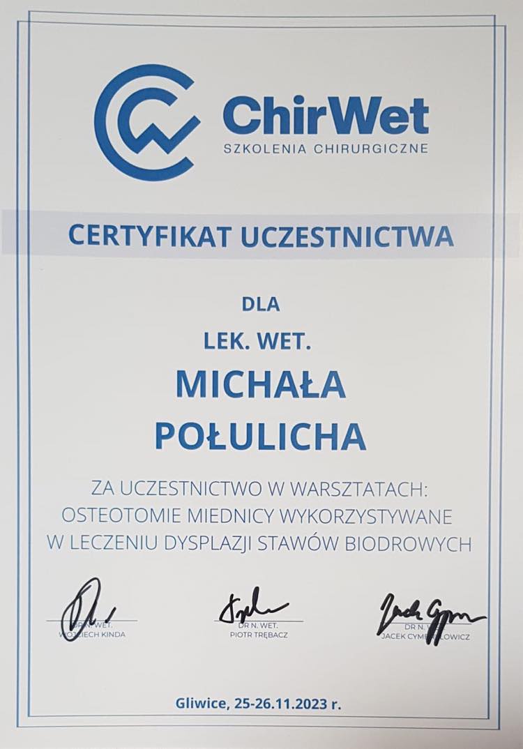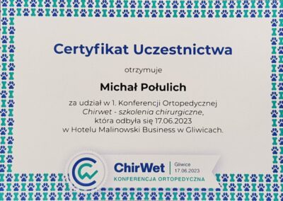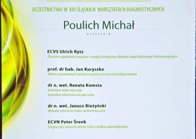 Tytuł specjalisty chirurgii weterynaryjnej uzyskany w 2008 r.